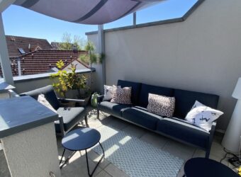 Unsere Sonnenterrasse liegt über den Dächern von Bensheim.